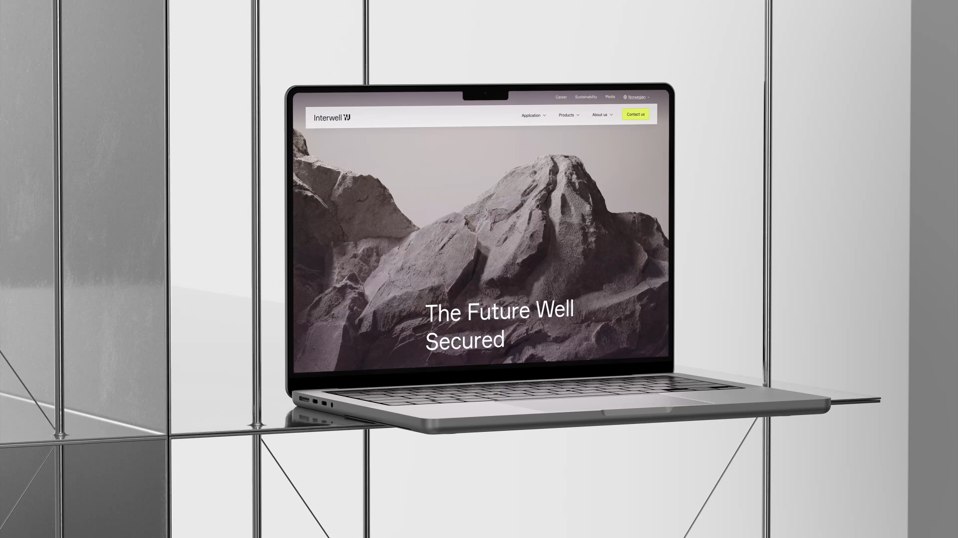 I samarbeid med Media.Work har vi også utviklet et 3D-univers som visualiserer den fysiske og mer abstrakte verden Interwell operer i, grafikk som illustrerer steinformasjoner, lysbrytning, metall og glass - som alle er materialer inspirert av Interwells produktportefølje eller fysiske omgivelser.
