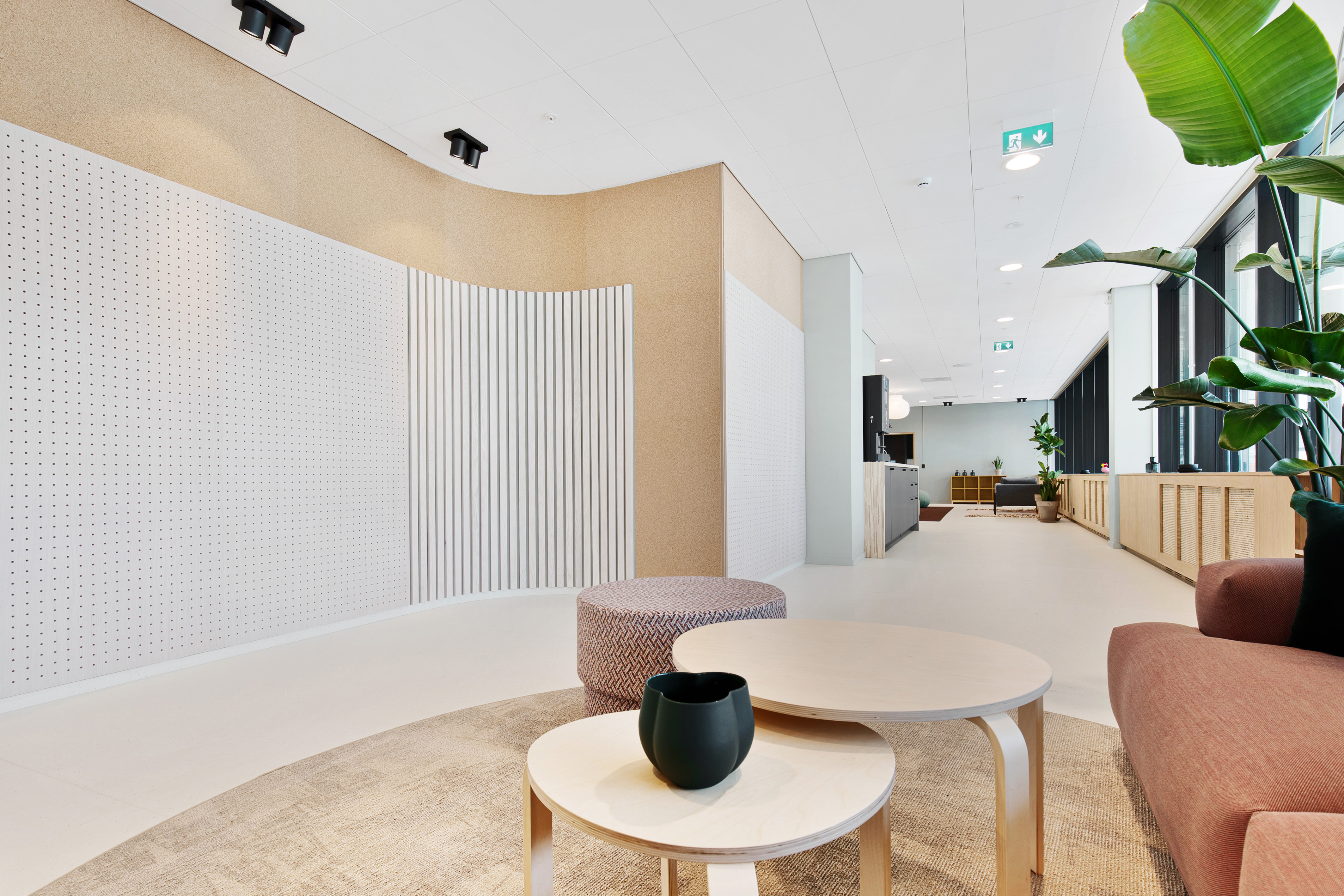 Vi jobbet også sammen med interørdesigner på konsept og innredning av nye kontorlokaler, der vi utarbeidet formspråk, fargepaletter og kundereiser for hvordan opplevelsen i lokalet skule være.